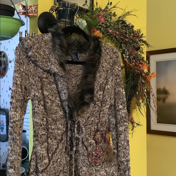 Gorgeous brown sweater from Boston Proper with a tie front. The appliqués on the front side are a beautiful touch.