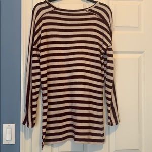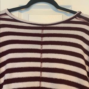 Maroon and white striped high low sweater.