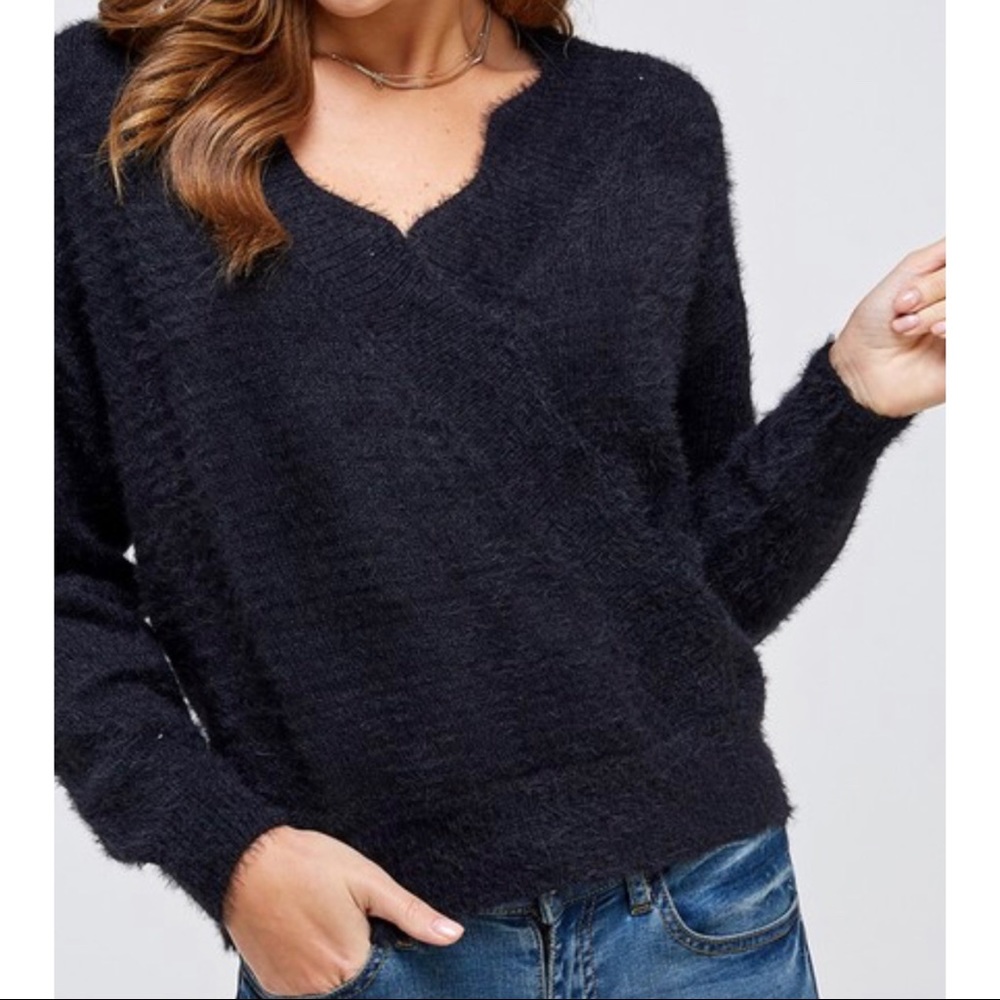 Stunning scalloped edge sweater. Extremely soft with stretch. Fabric is think and perfect for fall/winter.