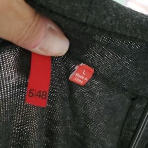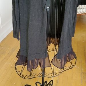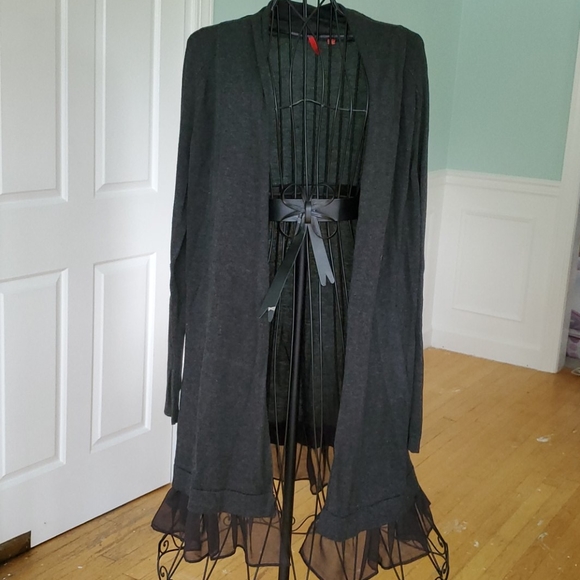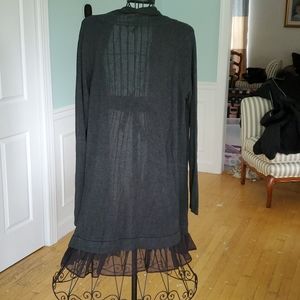 5/48 Gray long cardigan w/ sheer ruffle bottom