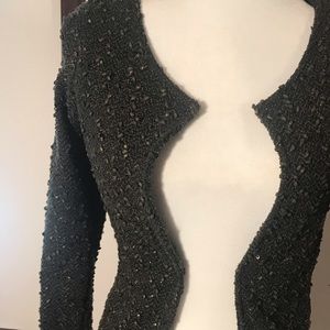 The perfect little sweater. Purchased in Spain. Interwoven wool and glitter. Photo shows white dot due from camera picking up glitter, however does not exist.