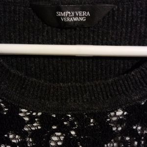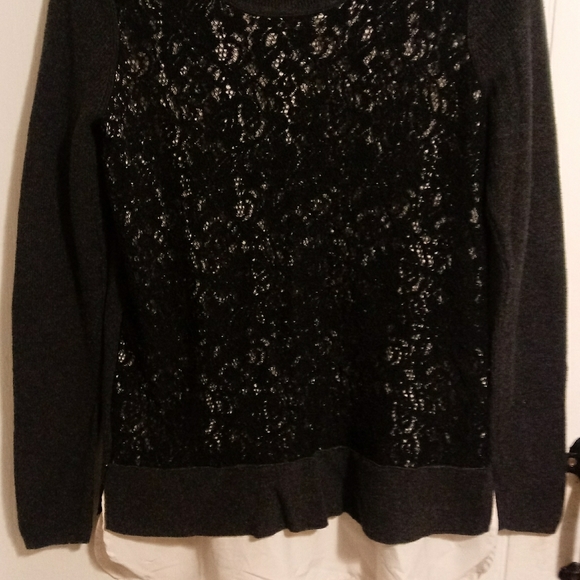 Dark gray n black sweater, size M, black lace on the front with cream underneath to look like its layered, the cream comes out the bottom