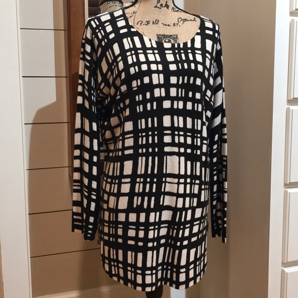 Long, lightweight sweater with side split, windowpane design, great with leggings