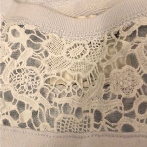 Abercrombie and Fitch sweater with lace detail at the top. Small stain on short (see photo for more detail) from a smoke free home