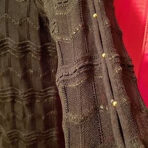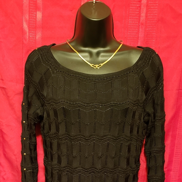 Soft sweater with attached inner shell and gold accents.