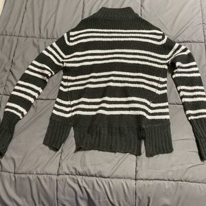 Green sweater with white stripes. Size XS. Has slots at the bottom. Never worn.
