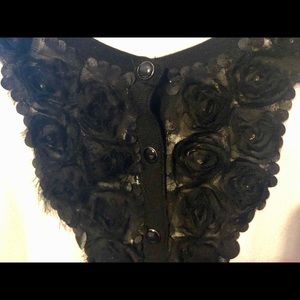 Black and white sweater with a beautiful flowering decoration on front with beautiful black metal buttons. In very good condition, have only worn 2 or 3 times at most. Size XS