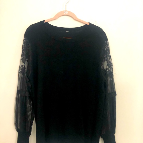 Pretty black sweater with sheer sleeves. So perfect for the holiday season coming up. Sz 1X.
