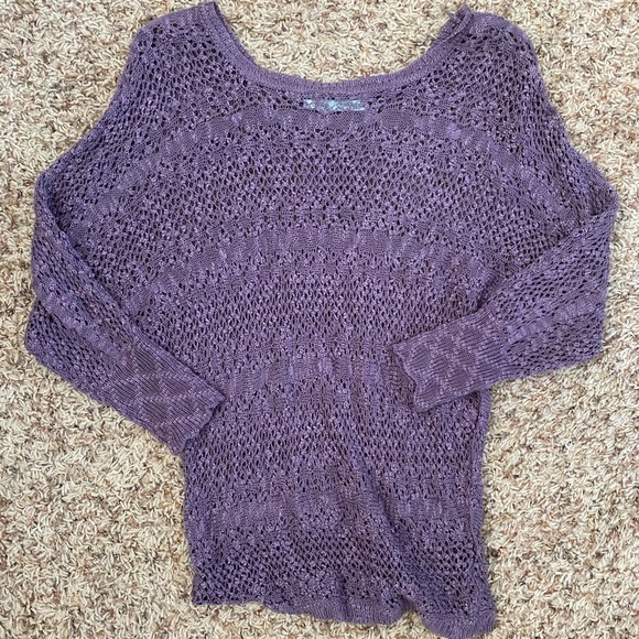 Purple light weight sweater more of a 3/4 sleeve. Size small from Maurices