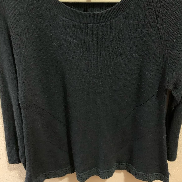 Black crew neck sweater with lace detail bottom trim 60 cotton 40 acrylic Great condition