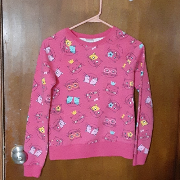 (Navy sweater worn twice pink cat sweater worn once) 1st. Deep Pink sweater thick with colorful cats. 2nd. Navy blue sweater thick with unicorns stars and rainbows