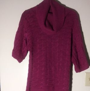 Hot pink sweater. It comes down long enough to be worn as a sweater dress. I wore it as a sweater dress worn with black leggings.