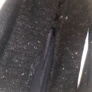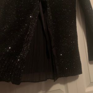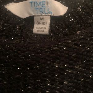 Black long sleeve Sweater with blended sliver thread and black and silver sequin. Open back with black silk ties and sheer back. Beautiful for New Years Eve or nice evening. Pairs awesome with jeans and nice pair of heels. Never worn new without tags.