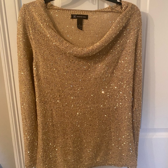 INC gold sweater with sequins. Great for holiday parties