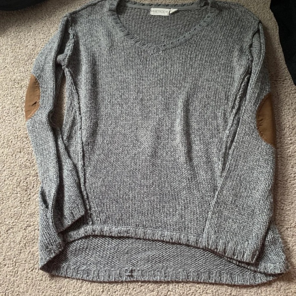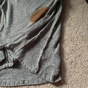 Grey sweater with brown patches ok the elbows