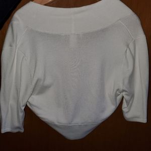 White quarter sleeve cardigan. Open neckline