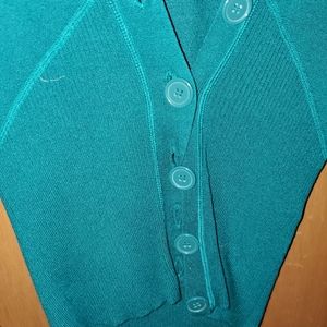 Turquoise long sleeve sweater. V neck, 5 button closure