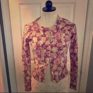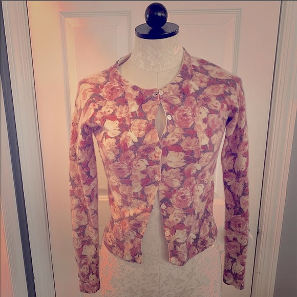 Banana Republic button down cardigan. Beautiful rose flower print. Very soft Lambs Wool/ Angora Rabbit. Gently loved. Fits more like an XS.