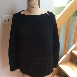Boat neck horizontal ribbed Cardigan sweater
