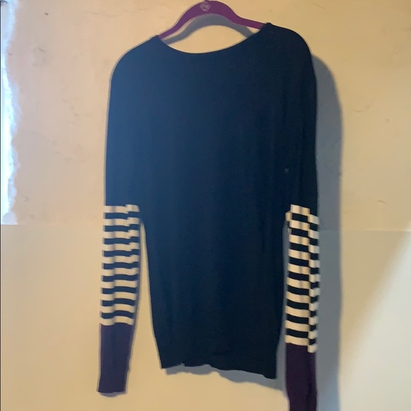 Black with striped sleeves with purple cuffs