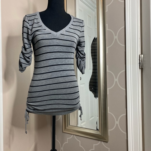 Black and gray sweater with ruched siding