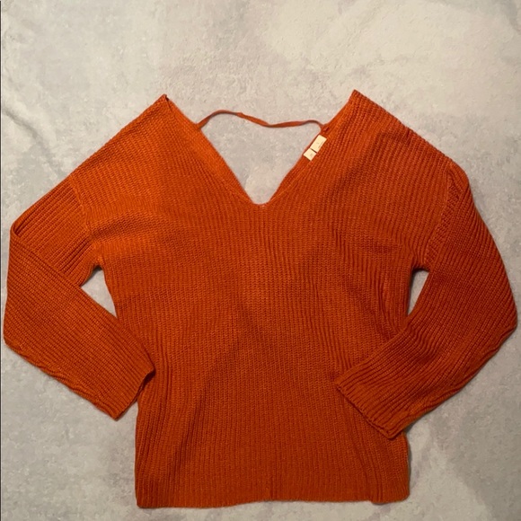 Cute orange sweater with a knotted open back