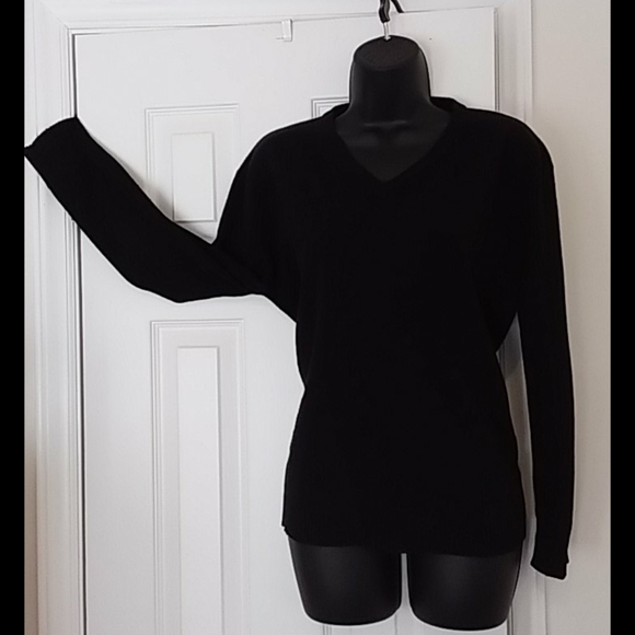 Lambswool v-neck jet black sweater. Great with a turtle neck or on its own.