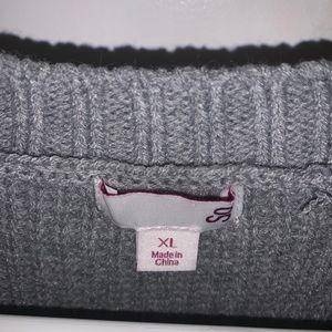 Grey with maroon and red stripes Goes perfect with maroon leggings !! Women’s xl but runs smaller Worn a few times