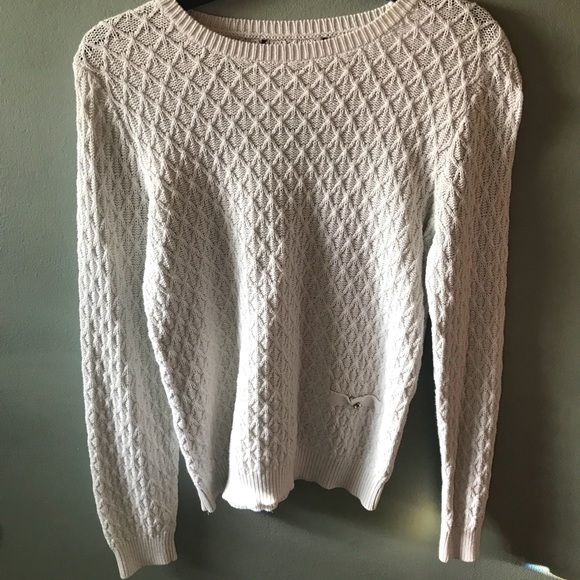 comfy white sweater gold button detail on fake bottom front pocket