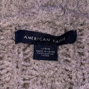 Cream, long sleeve sweater. Has holes throughout. High neck.