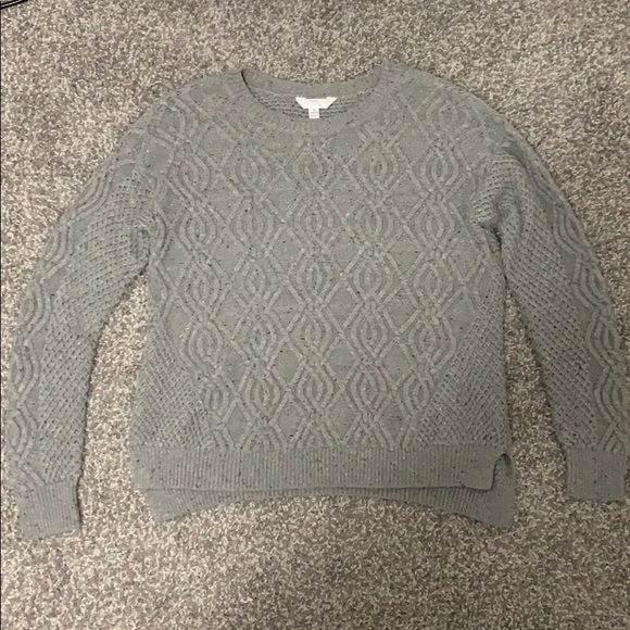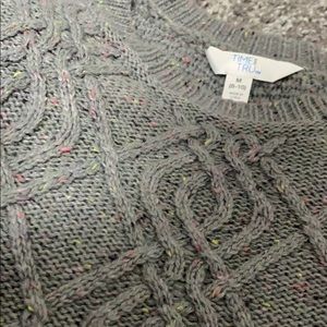 Grey sweater with specks of pink, purple, and yellow (see second picture for reference)