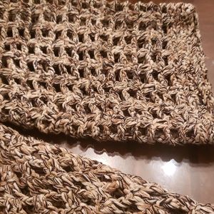 Crochet look..spiderweb design on back..3/4 sleeves..1 ball buttoned closure..(very heavy)metallic