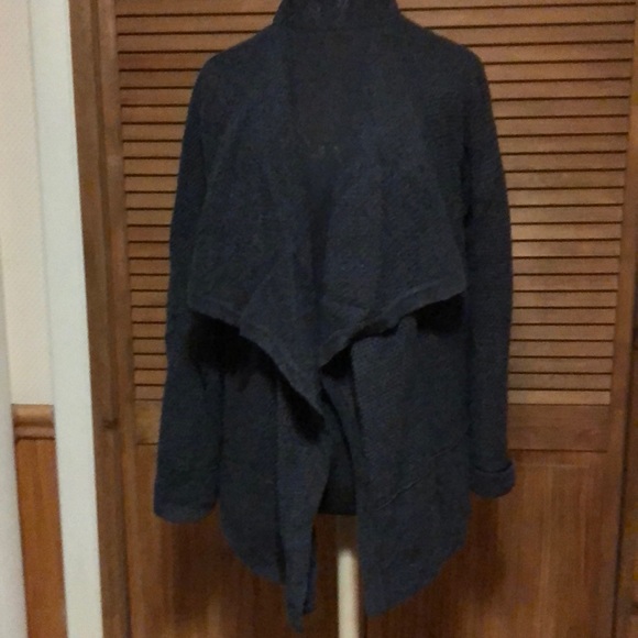 Charcoal sweater...oversized collar...no buttons