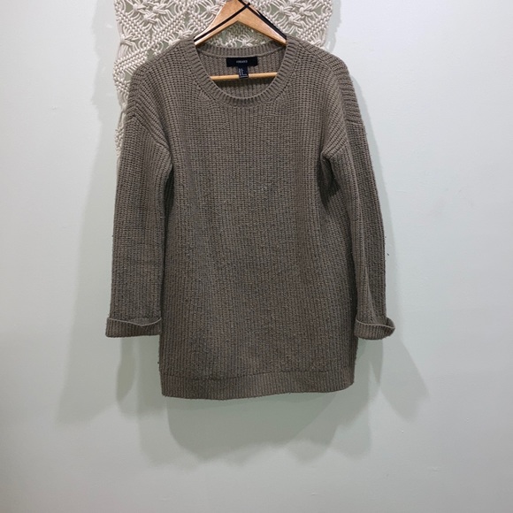 Light brown sweater. Long enough to cover butt