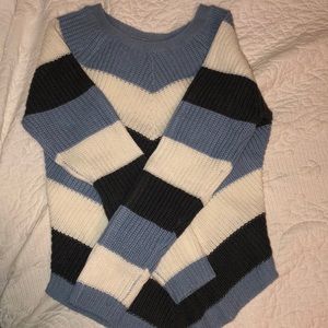 Blue, white, and grey sweater. V shaped bottom, barely worn.