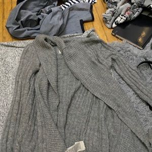 Waist length cardigan sweater. No pockets. Nothing wrong with it, just doesn’t fit.