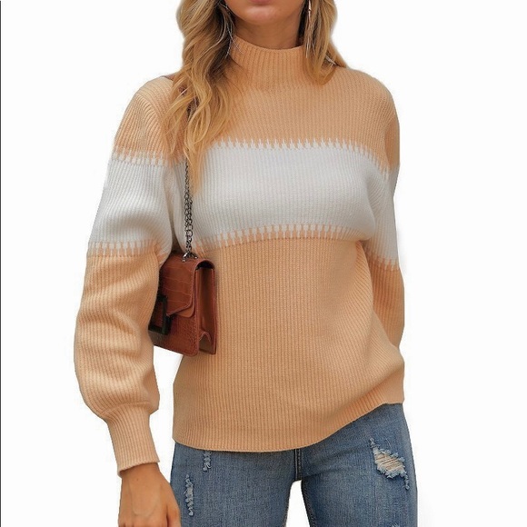 ~Stripe casual high neck loose fit sweater! Color: Khaki Available size: S-M-L-XL