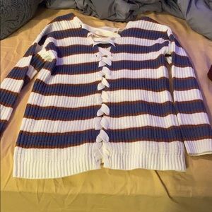 knitted sweater in great condition, partially new. Has laced down the back and plain front!
