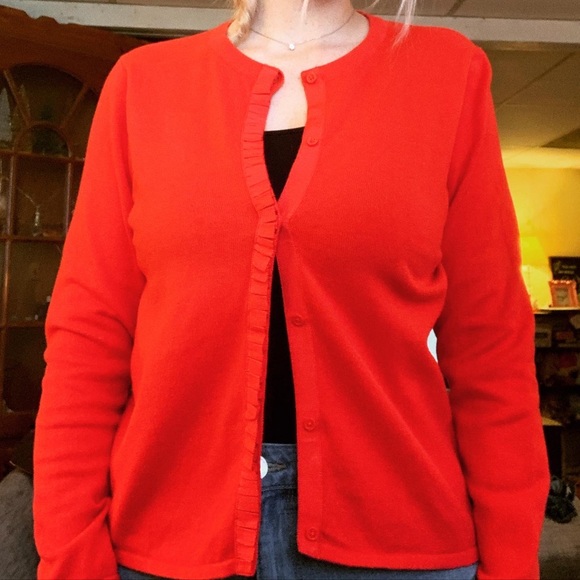 Love this red ruffled sweater that’s really soft! It’s in perfect condition!