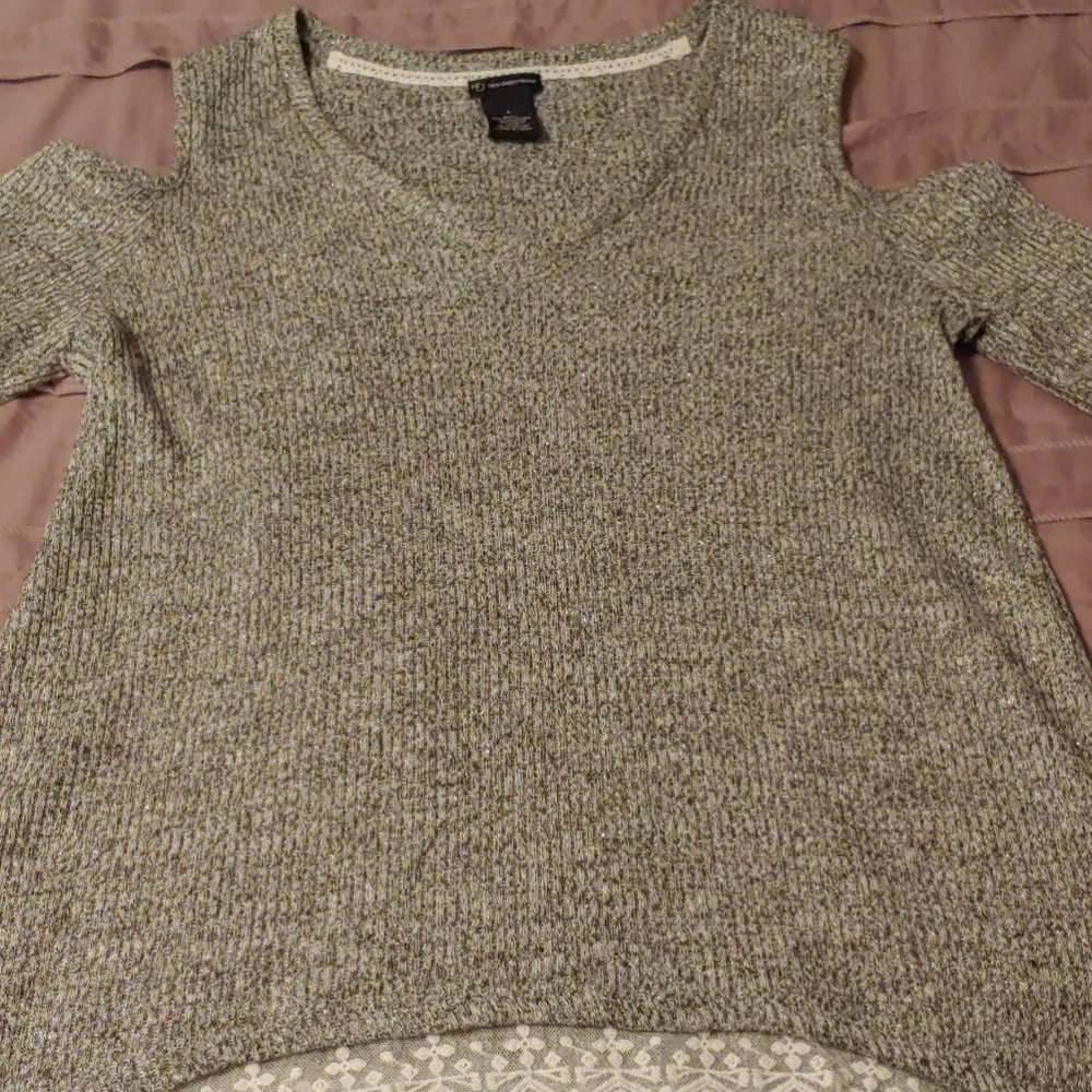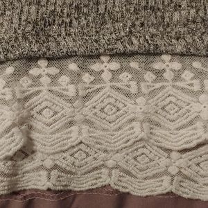 Long sleeve, cold shoulder with lace bottom. Sparkle detail in material.
