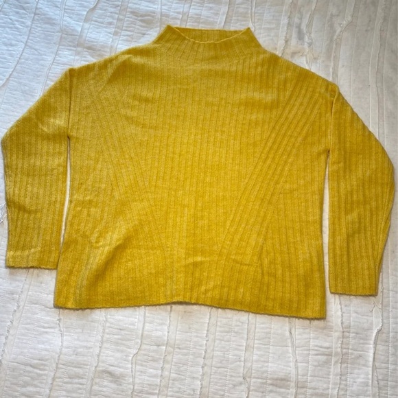 Bright yellow sweater. Old Navy size medium. soft material. Slightly stretched neck line Easy to dress up or dress casual