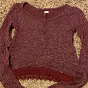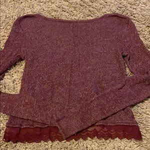 Maroon sweater with lace on the bottom