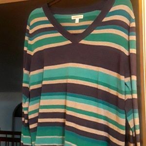 V-neck, lightweight, multi color stripes