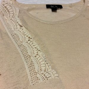 Soft Sweater with lace detail going down the sleeve. Sleeves stop just above the elbow. Just make an offer!