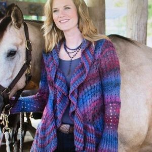 Laramie Lass cardigan fromRods Western Palace. Size small but fits like a medium. Open knit, open front