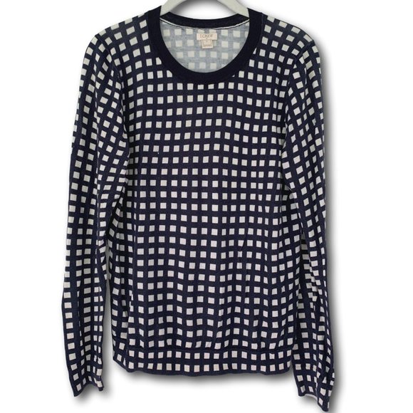 Lightweight navy and white gingham JCrew sweater