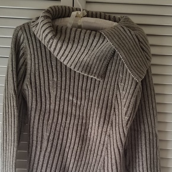 Sweater with pretty split neckline and small split on bottom of sweater.