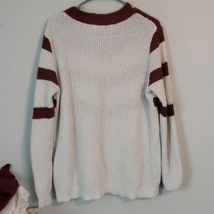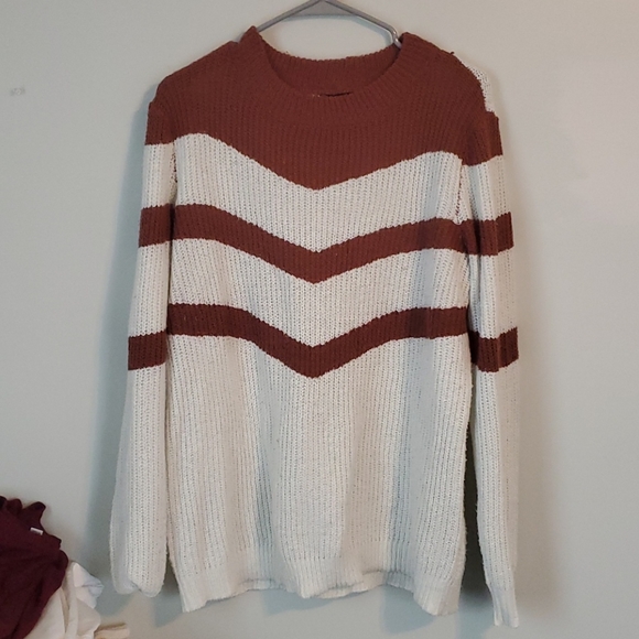 Rust and white chevron striped sweater. Crew neck