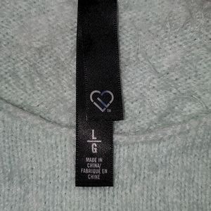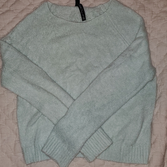 Aqua/light blue sweater with a soft fuzzy texture.