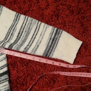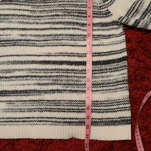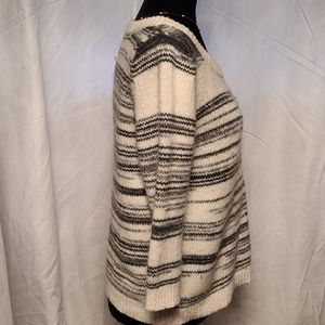 Women's 3/4 length sleeve sweater black and cream striped.